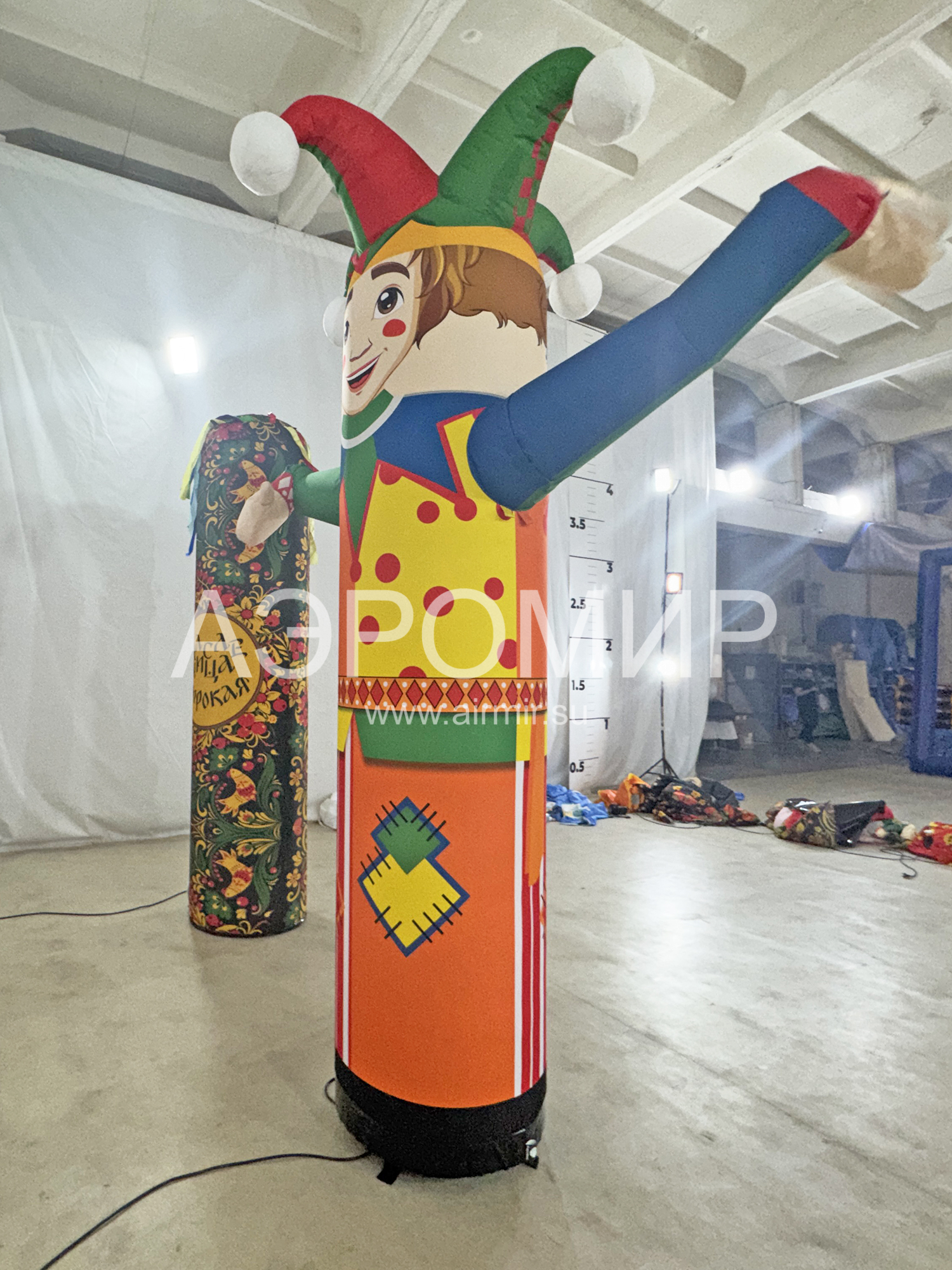 Независимо от выбранного персонажа, Петрушка в центре внимания. Поэтому не менее притягательным станет наш Петрушка - с машущей рукой. Яркое одеяние, привычный верх и энергичные махи руками - привлекут взоры людей, а значит этот балагур справится с задачей афиши мероприятия и праздника.