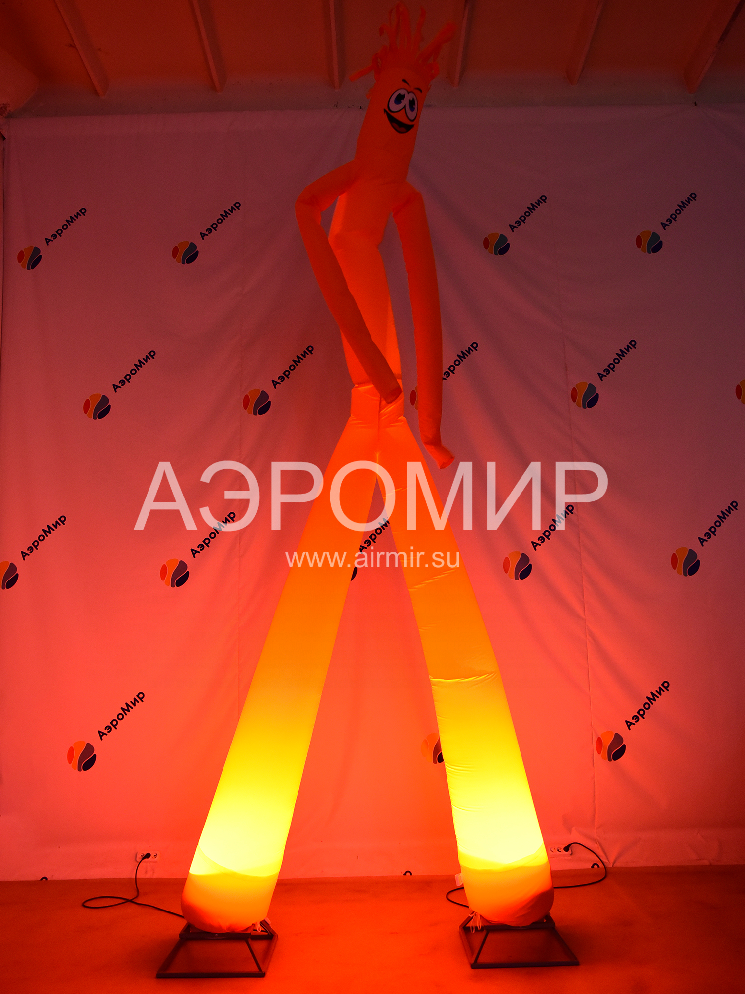 Установите напротив друг друга вентиляторы изделия, предварительно очистив площадку от мусора, колющих и режущих предметов. Выньте фигуру из чехла, разверните ее, держите аэромена в руках, чтобы не испачкать ткань.
