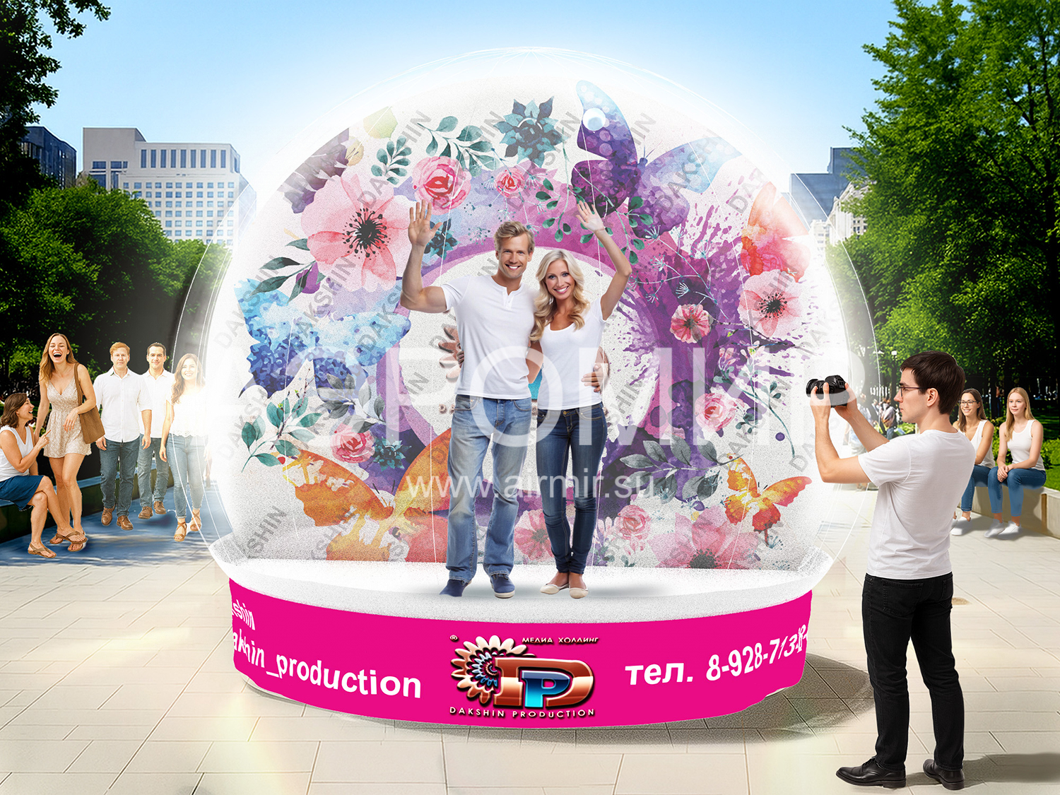 Чудо-шар - это сфера, зайдя во внутрь которой оказываешься в мире сказочных красок. Летящие бархатные снежинки или конфетти, потрясающий пейзаж на фотобаннере и фонтан световых оттенков - создают удивительное разнообразие для праздничных и рекламных фото.