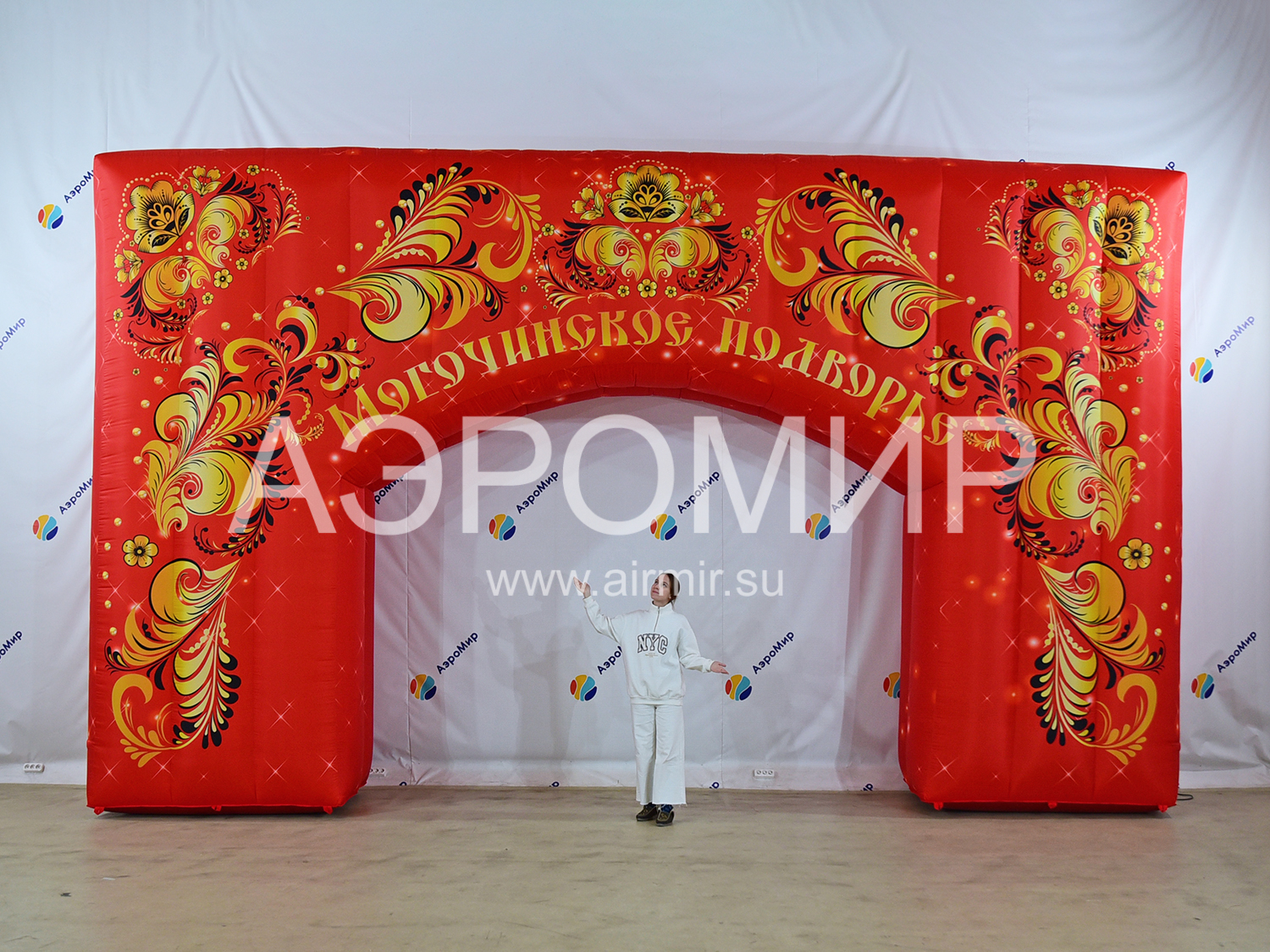 Прекрасная праздничная арка для оформления входной группы, места театральной постановки, праздничной торговли. Простая форма и невероятно красочная фотопечать с тематическими надписями и узорами. Легка и мобильна в установке и обслуживании. Изготовим в короткие сроки и доставим в любую точку. Гарантия производителя 1 год.