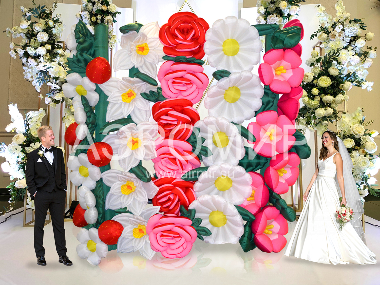 Яркое панно собрано из наших лучших, самых красивых надувных цветов. Оно устанавливается легко и быстро на металлические стойки, которые поставляются вместе с оболочкой.