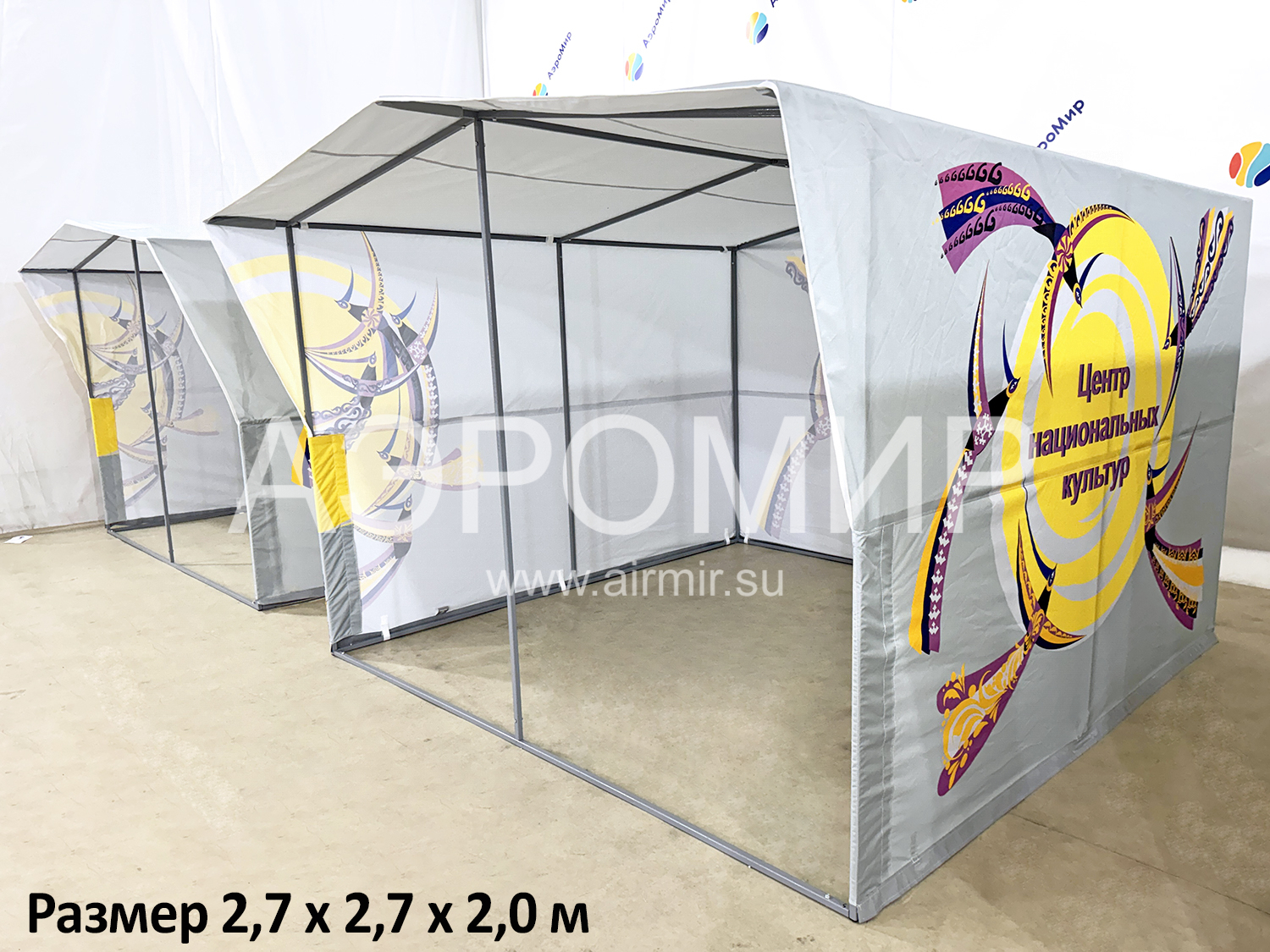 Палатка на каркасе для рекламных и промо целей. Выполняем индивидуальное брендирование, наносим логотипы и слоганы. Прочный и надежный металлокаркас. Мобильна и проста в уходе. Изготовим в короткие сроки, доставим в любую точку.