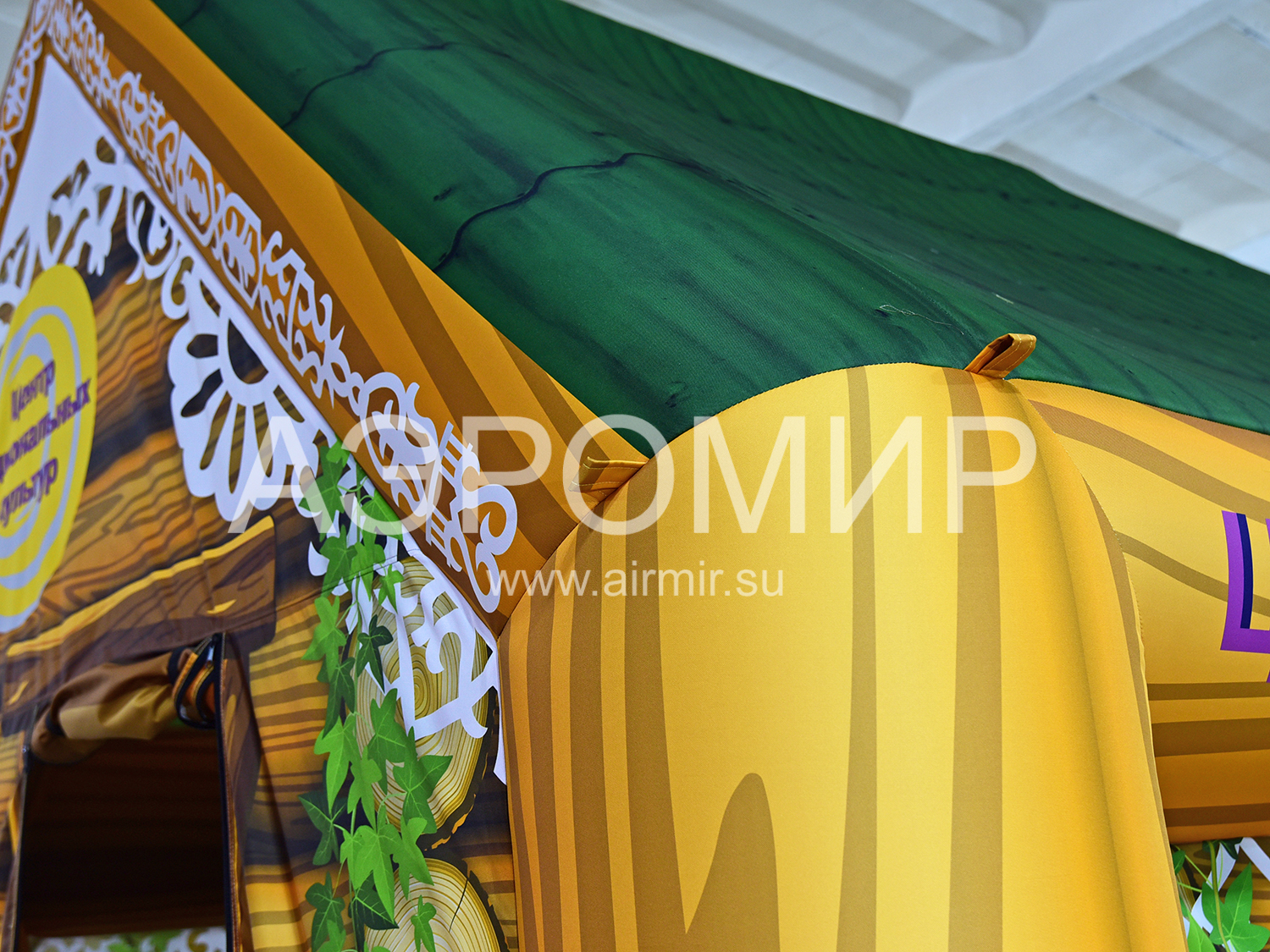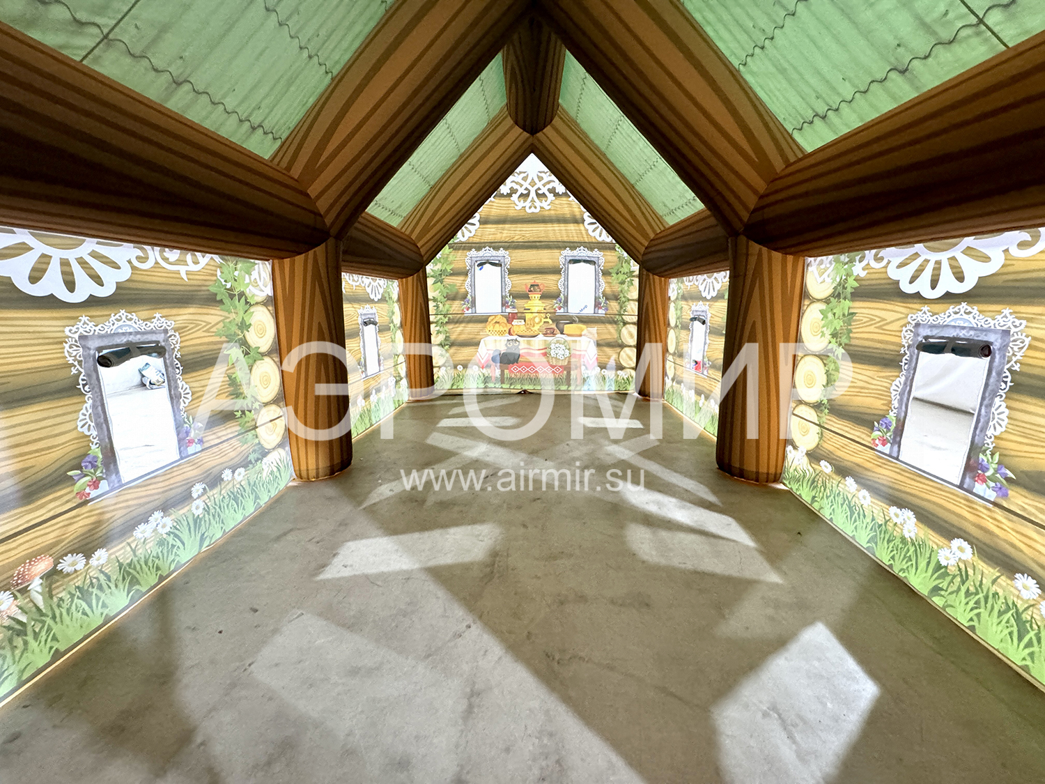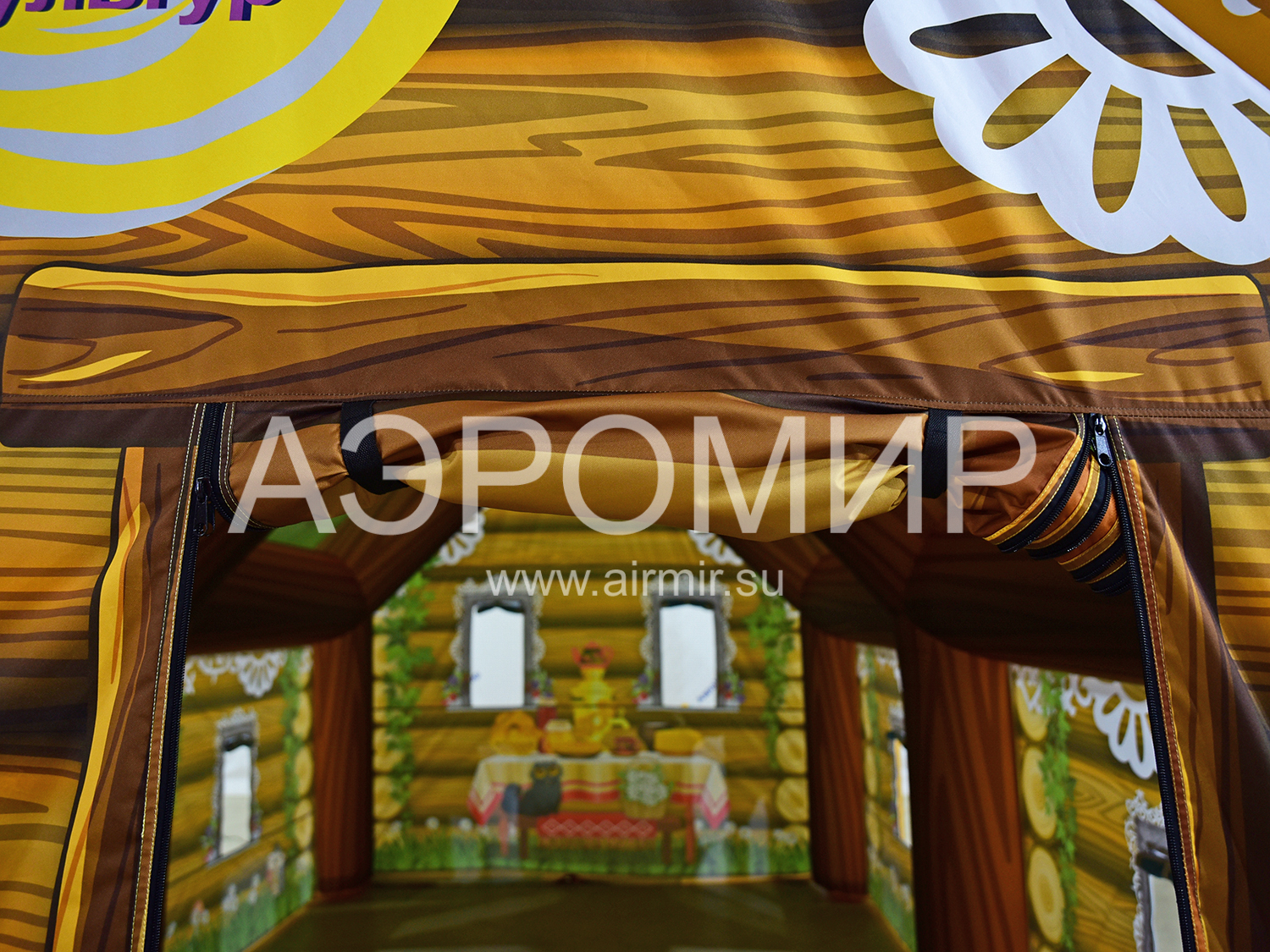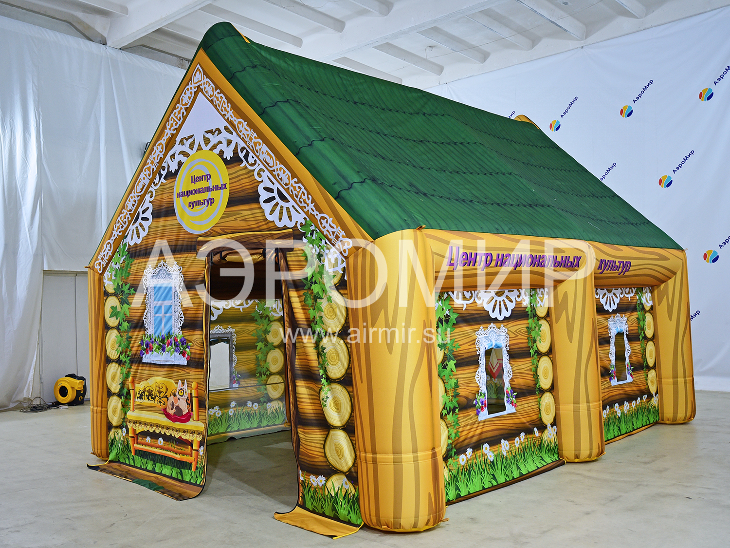 Большая надувная изба с яркой фотопечатью русских узоров – идеальное украшение для любого мероприятия. Создает атмосферу волшебства и уюта.