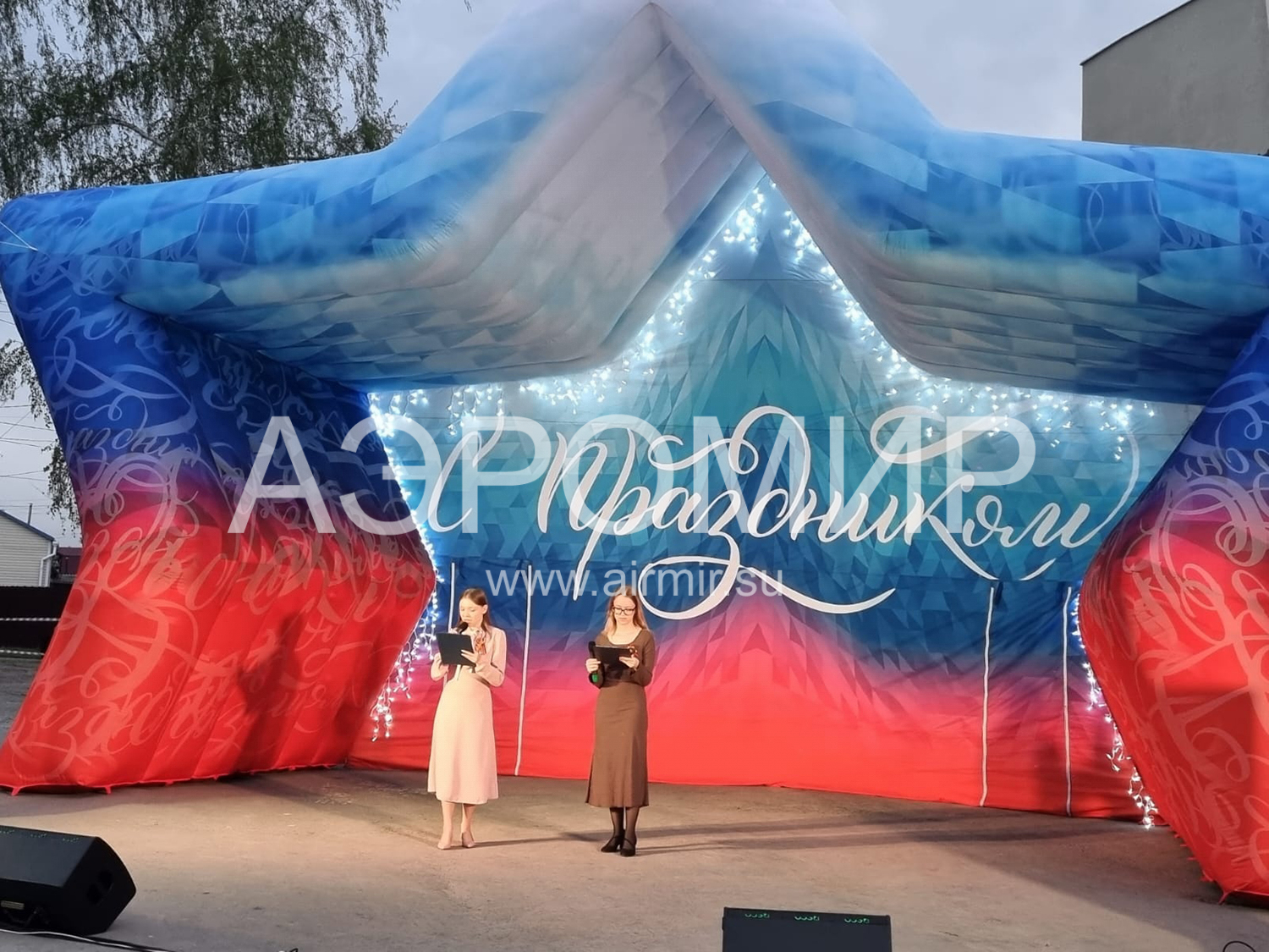 Удивительной красоты сцена, эксклюзивная разработка нашей команды. У нас 3 варианта исполнения - в стандартных цветах, с полноцветной фотопечатью и с печатью и подсветкой. Самые торжественные мероприятия состоятся на данной сценической площадке, патриотические праздники и другие тематические события обретут новый особенный смысл.