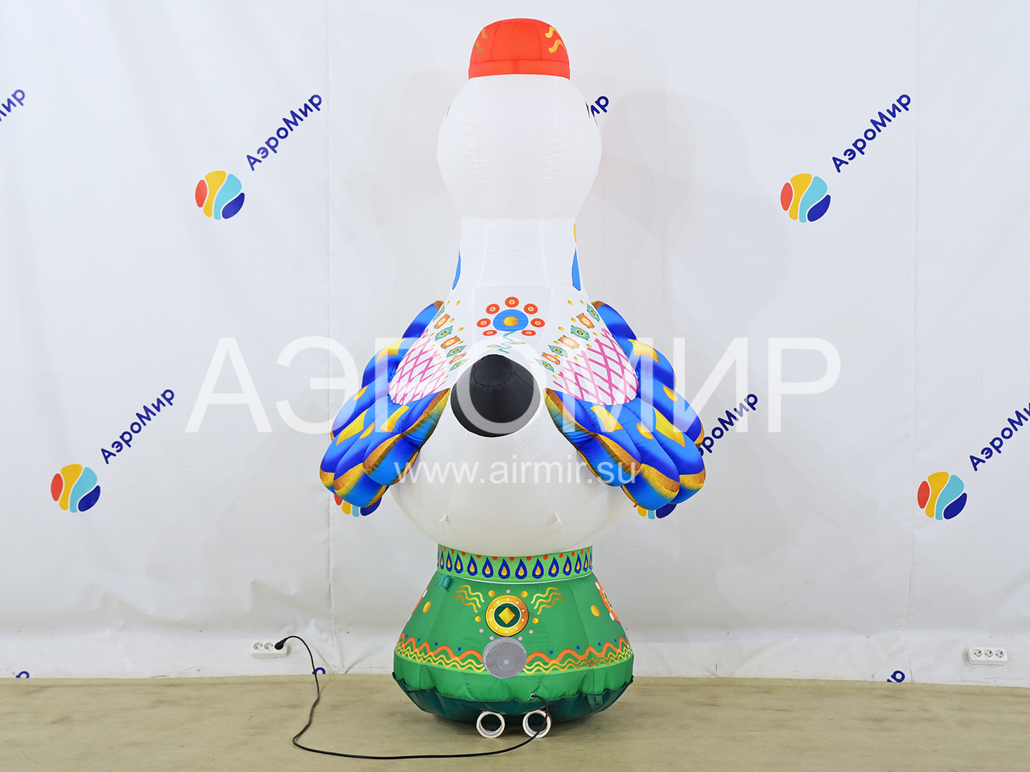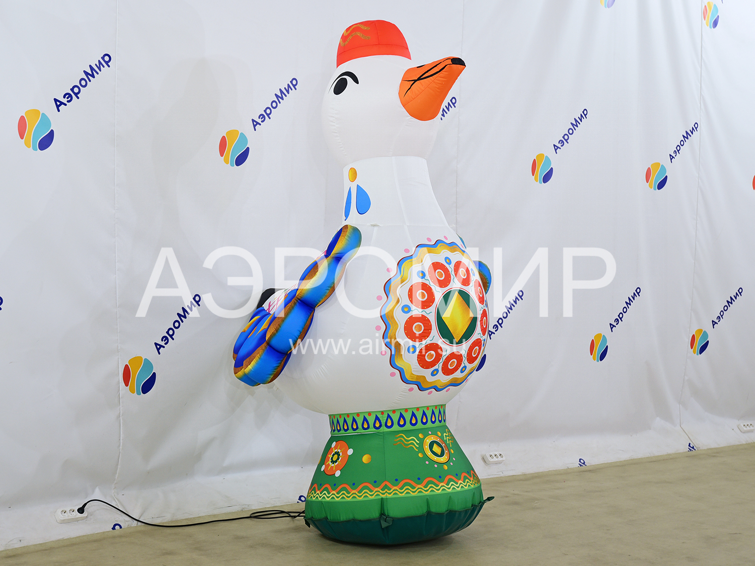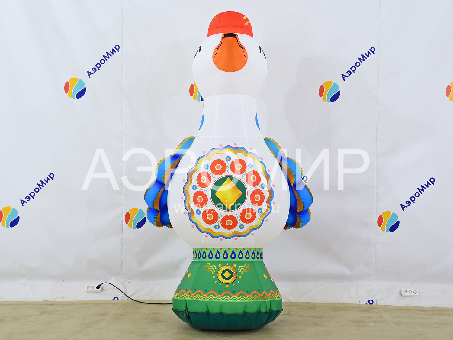 Эта очаровательная надувная уточка, выполненная в духе традиционных дымковских игрушек, станет эффектным украшением любого мероприятия. Она способна мгновенно привлечь внимание, обозначив вход на праздник или ярмарку, и привнесет праздничное настроение в интерьер дома культуры, театра, музея, библиотеки, ресторана или кафе. Благодаря своим внушительным размерам, эта заметная декорация идеально подходит для оформления городских улиц и просторных помещений, особенно во время Масленицы. Для еще большей функциональности, фигуру можно оснастить подсветкой и использовать для размещения рекламных сообщений.