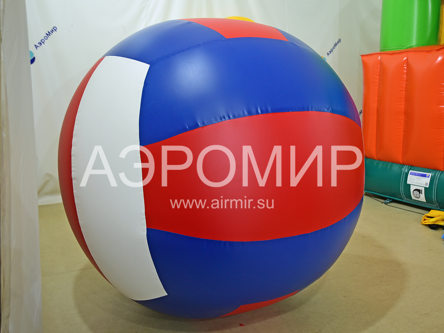Гигантский двухметровый мяч сам по себе является аттракционом: в обычной жизни такой нигде не встретишь. А уже если начать в него играть - веселье гарантировано.